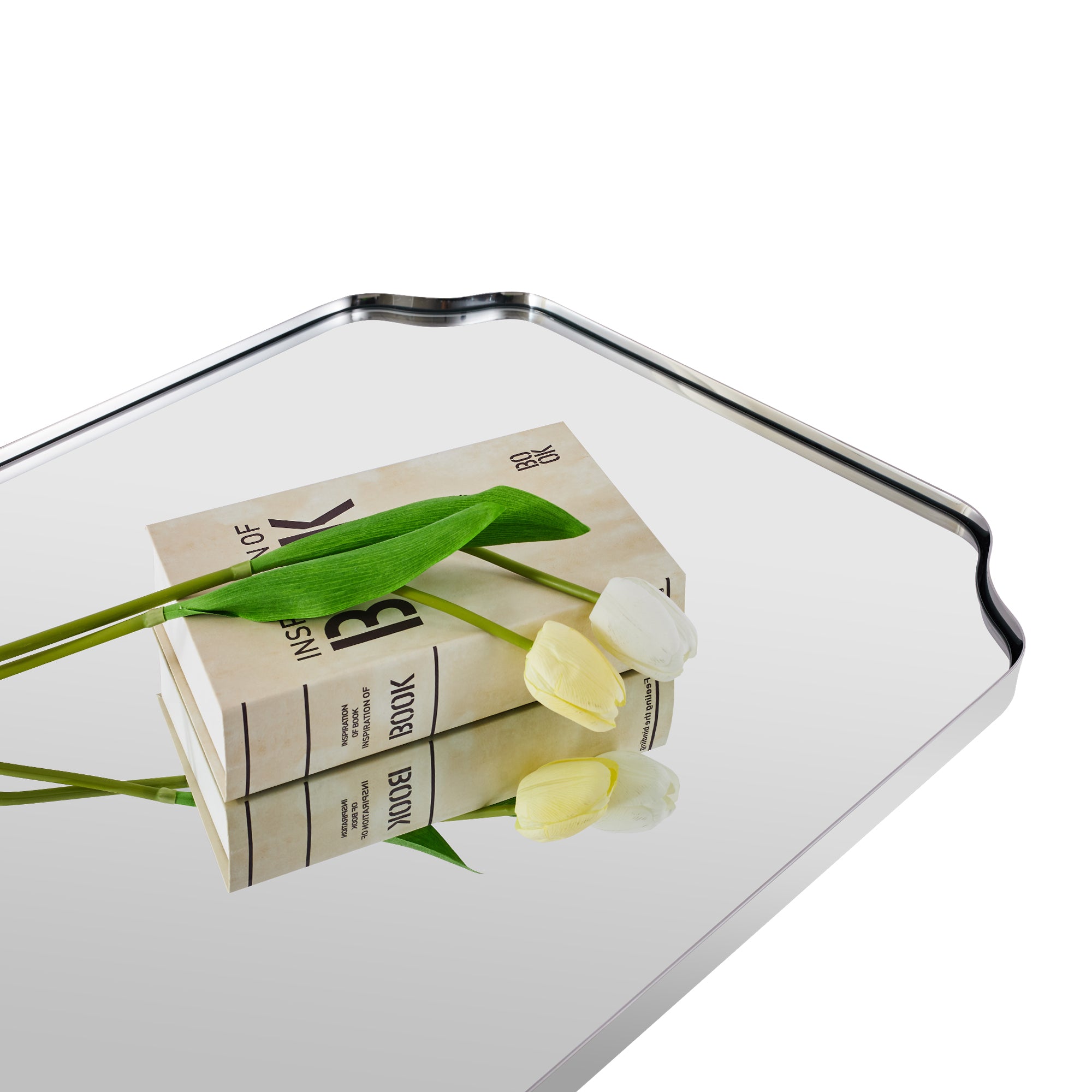 Traditional Rectangle Scalloped  Wall Mirror for Bathroom | Stainless Steel Frame